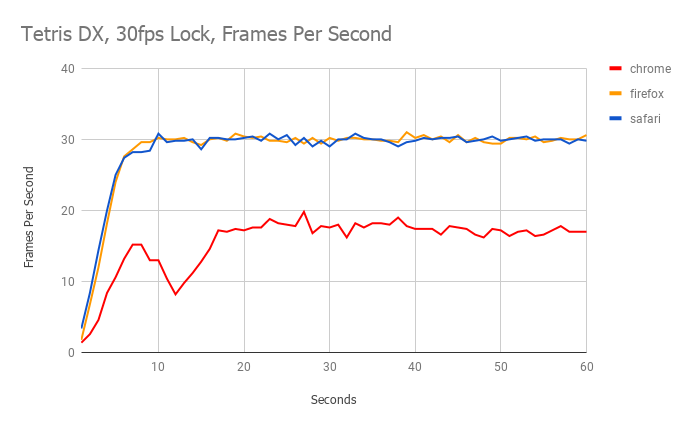So the next logical step was to see about slowing the emulator down by locking the frame rate to a maximum fixed value. The reasoning being, a slower emulator might give the browser more headroom to do its thing. I chose a 30fps lock for this test